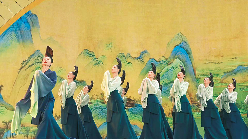 图为围绕传世名作《千里江山图》创排的舞蹈诗剧《只此青绿》亮相2022年中央广播电视总台春节联欢晚会(视频截图)。 中央广播电视总台供图