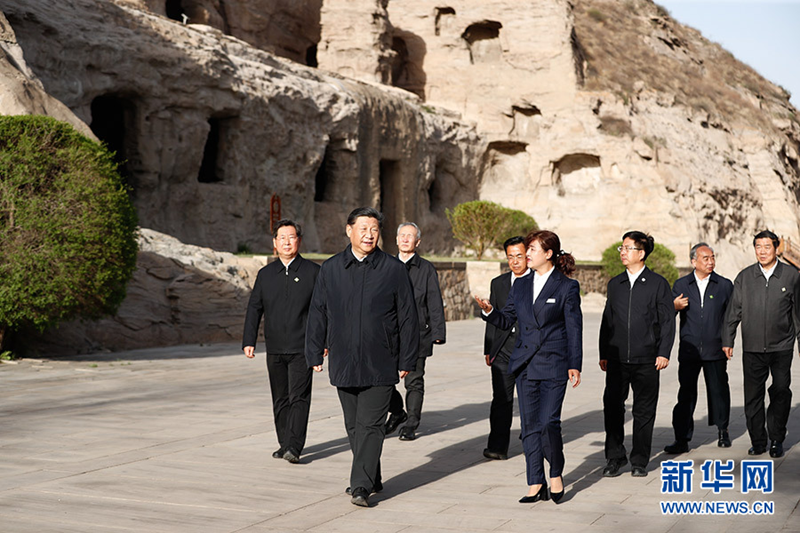 2020年5月11日,习近平总书记在大同市云冈石窟考察历史文化遗产保护情况。 新华社记者 刘彬/摄
